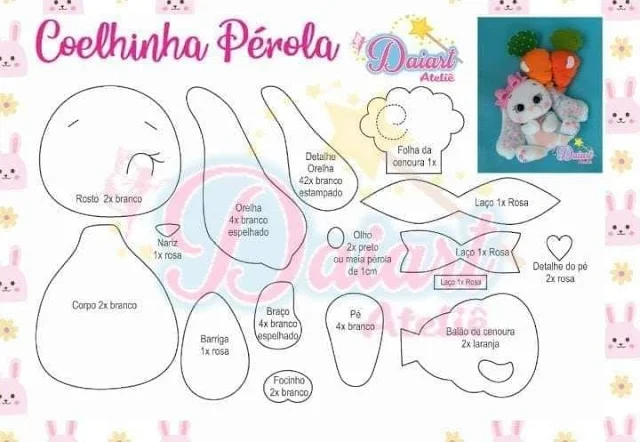 Coelhinha Pérola de Feltro com Moldes Mini Moldes grátis a la/s março 12, 2020 Coelhinha Pérola de Feltro com Moldes Mini credito Daiart Atelier